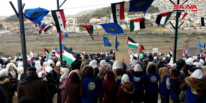وجدد المشاركون الإصرار على استكمال المعركة حتى تحرير كامل الجولان السوري المحتل بهمة أبطال قواتنا المسلحة ورفع العلم السوري فوق ترابه الطاهر.
