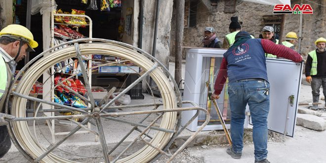 ولفت المهندس محمد الرشيد المشرف على أعمال المشروع إلى أنه يتم العمل على تمديد 21 كابلاً رئيساً سعة كل واحد 1800 خط وتركيب 193 مجموعة توزيع منوهاً بالصعوبات التي واجهت العمل وأهمها الخراب والضرر اللذان لحقا بالشبكة جراء الإرهاب.