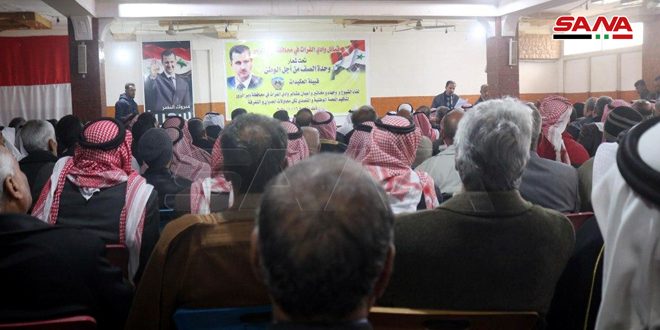 المشاركون في الملتقى الذي عقد تحت شعار “وحدة الصف من أجل الوطن” وبحضور عدد كبير من شيوخ ووجهاء ومخاتير وأعيان عشائر وادي الفرات شددوا في بيان لهم على الوحدة الوطنية والوقوف صفا واحدا لمؤازرة الجيش العربي السوري في مواجهة الإرهاب والمجموعات الانفصالية والتصدي لكل أشكال العدوان وعدم الاعتراف بمن نصبهم المحتلان الأمريكي والتركي كشيوخ للعشائر لتشويه سمعة العشائر الوطنية العريقة.