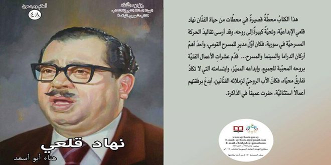 قراءة في حياة الفنان نهاد قلعي تضمنها الكتيب الصادر عن سلسلة “أعلام ومبدعون” للكاتبة هناء أبو أسعد منذ طفولته إلى رحيله مشيرا إلى الصعوبات التي اجتازها ليصل إلى ما وصل إليه من شهرة ونجاح.