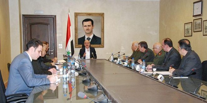 ناقش وزير الداخلية اللواء محمد الرحمون مع الضباط المعنيين في وزارة الداخلية الآليات التنفيذية لتطبيق أحكام المرسوم التشريعي رقم 54 لعام 2013 القاضي بمنع التعامل بغير الليرة السورية والمرسومين التشريعيين رقم 3 و4 لعام 2020 وتعميم الإجراءات الواجب اتخاذها على جميع الوحدات الشرطية في المحافظات كافة.