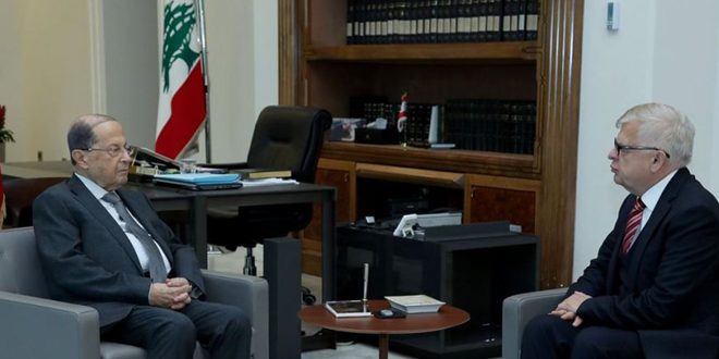 بحث الرئيس اللبناني العماد ميشال عون مع السفير الروسي لدى لبنان ألكسندر زاسبكين التطورات المحلية والإقليمية والدولية.