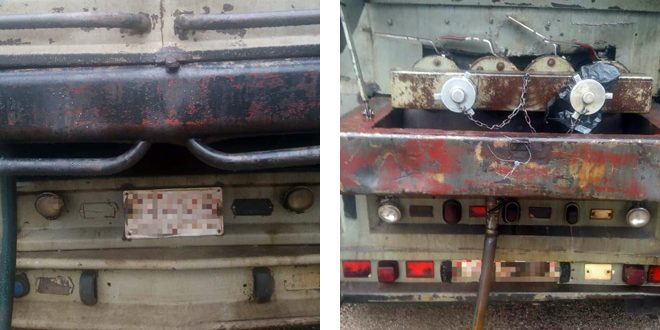 ضبطت دوريات مديرية التجارة الداخلية وحماية المستهلك في حمص بالتعاون مع الجهات المختصة مساء اليوم صهريجين مملوءين بمادة المازوت قام سائقاهما بنزع الأختام الرصاصية عن هيئة تفريغ المادة وسحب كمية 800 ليتر من الصهريج الأول و150 ليتر من الصهريج الثاني قبل الوصول إلى مقصدهما بالإضافة إلى ضبط براميل جانب الصهريجين مملوءة بكمية 600 ليتر مازوت.