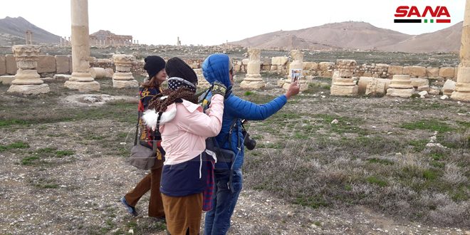 للمرة الأولى بعد تحرير مدينة تدمر الأثرية من الإرهاب زارت مجموعة سياحية من تايلاند المدينة واطلعت على تاريخها وإرثها الحضاري والإنساني الذي يعتبر مقصدا مهما للسياح ووثقوا آثار الدمار الذي تعرضت له الصروح التاريخية جراء اعتداءات تنظيم “داعش” التكفيري.