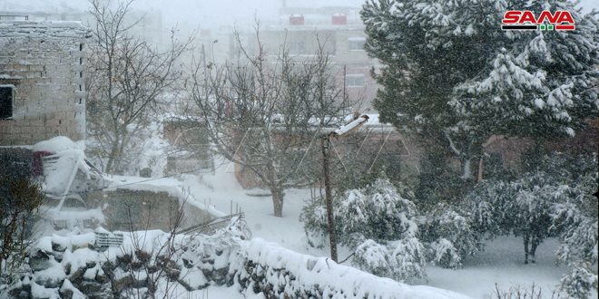 تتأثر البلاد بمنخفض جوي مرفق بكتلة هوائية قطبية المنشأ يمتد في طبقات الجو كافة، وفيما يلي صور للثلوج في ريف السويداء الشرقي.