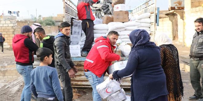 استفادت 17400 عائلة في الريف الجنوبي لمحافظة الحسكة من المساعدات الغذائية وغير الغذائية الموزعة من قبل وحدة إدارة الكوارث في فرع منظمة الهلال الأحمر العربي السوري.