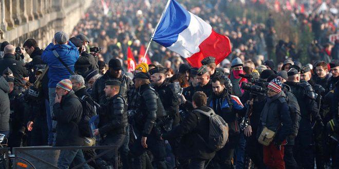 وشددت السلطات الفرنسية في وقت سابق اليوم من إجراءاتها الأمنية استعداداً لمظاهرات كبرى دعت اليها النقابات العمالية في باريس ومدن أخرى احتجاجاً على مشروع تعديل أنظمة التقاعد الذي اقترحه ماكرون.