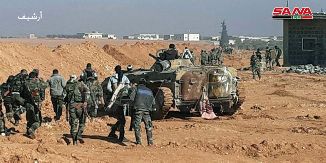 طهرت وحدات من الجيش العربي السوري بلدات وقرى معر شمارين وتقانة وتلمنس ومعرشمشة بريف إدلب الجنوبي الشرقي من آخر بؤر الإرهاب فيها محققة تقدماً جديداً باتجاه مدينة معرة النعمان وذلك بعد تكبيد الإرهابيين خسائر بالأفراد والعتاد.
