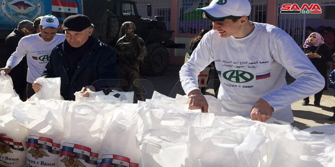 وتم في منتصف الشهر الماضي توزيع 400 سلة غذائية وسط مدينة الحسكة مقدمة من روسيا الاتحادية للأسر المهجرة من ريف المحافظة الشمالي نتيجة الاعتداءات التركية.