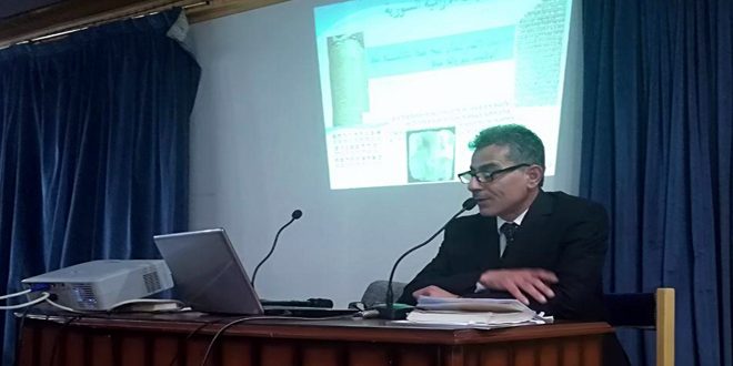 وقدم الباحث التاريخي الدكتور علي صقر أحمد إضاءة على مراحل تطور الخط واللغة الآرامية التي تمتد من بدايات الألف الأول قبل الميلاد مقدماً عرضاً للممالك القديمة.. الآرامية والنقوش المتعلقة بمراكز تلك الممالك المكتوبة بالخط الآرامي المستمد من الخط الفينيقي.