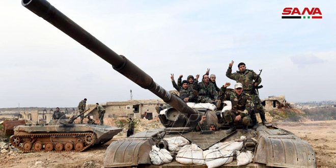 واصلت وحدات الجيش العربي السوري العاملة في حلب عملياتها الدقيقة ضد التنظيمات الإرهابية ودمرت تحصيناتها في خطوط الاشتباك الأولى في مناطق انتشارها بالريف الغربي لمدينة حلب وتتابع تقدمها على محور خان طومان إلى الجنوب الغربي.