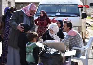 العيادة المتنقلة التي بدأت عملها اليوم تستمر لنحو شهرين بالتعاون بين منظمة الصحة العالمية والجمعية الخيرية للرعاية الاجتماعية حسب رئيس الجمعية زياد عربو الذي أوضح لمراسل سانا أن العيادة ستوفر خدمات طبية لمراجعين من مختلف الأعمار مجاناً.