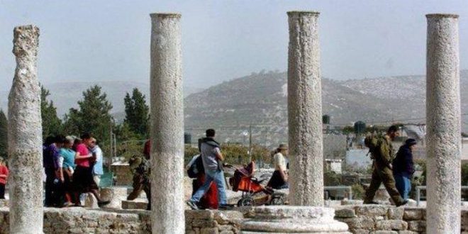 اقتحم مستوطنون إسرائيليون صباح اليوم المنطقة الأثرية في بلدة سبسطية شمال مدينة نابلس بالضفة الغربية.