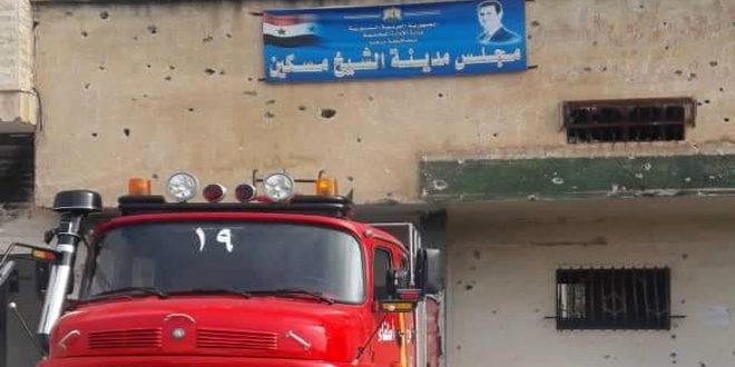 في إطار إعادة الخدمات للمناطق التي أعيد إليها الأمن والاستقرار عادت وحدة إطفاء مدينة الشيخ مسكين بريف درعا إلى ممارسة عملها ضمن بناء مجلس المدينة بعد توقفها خلال السنوات الماضية جراء الإرهاب.