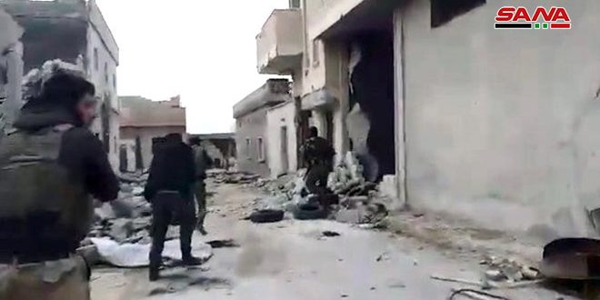 وحدات الجيش تمشط بعض أحياء معرة النعمان بعد دحر الإرهابيين عنها