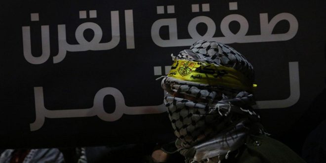 “صفقة القرن” المشؤومة سعت إدارة الرئيس الأمريكي دونالد ترامب للترويج لها على أنها خطة لتحقيق السلام في المنطقة بينما كشفت بنودها التي أعلنها الرئيس الأمريكي دونالد ترامب اليوم عن أنها مؤامرة أمريكية صهيونية تستهدف تصفية القضية الفلسطينية واسقاط حقوق الشعب الفلسطيني.
