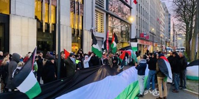 شارك عدد من أبناء الجالية الفلسطينية المقيمين في بلجيكا بوقفة احتجاجية أمام مقر السفارة الأميركية رفضاً لـ (صفقة القرن) التي تهدف إلى النيل من حقوق الشعب الفلسطيني وقيام دولة فلسطين وعاصمتها القدس.