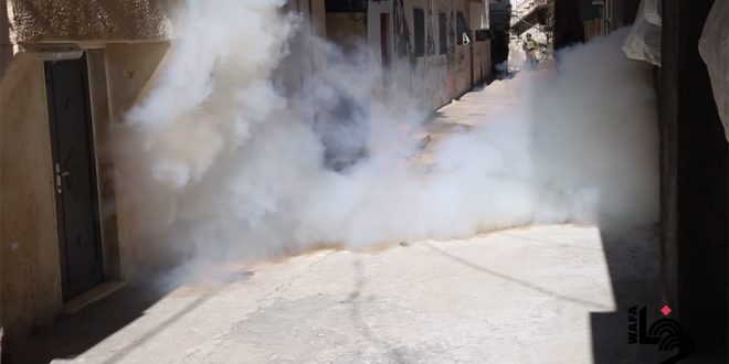 أصيب عشرات الفلسطينيين بحالات اختناق اليوم خلال اقتحام قوات الاحتلال الإسرائيلي مخيم العروب وبلدة سعير شمال شرق الخليل بالضفة الغربية.