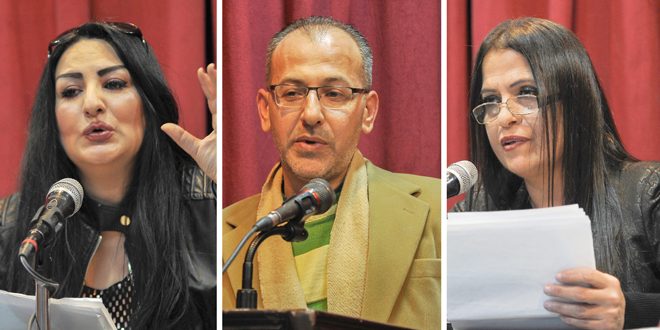 الشاعرة سهير زغبور ألقت نصوصا التزمت الشكل الموزون وعبرت من خلال انفعالاتها الوجدانية عن حبها لوطنها وبلادها إضافة إلى نصوص عالجت فيها بعض القضايا الاجتماعية وطرحت حالات إنسانية.