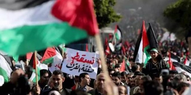 ومنذ إعلان الرئيس الأمريكي دونالد ترامب في انحياز سافر لكيان الاحتلال وانتهاك لقرارات الشرعية الدولية الثلاثاء الماضي بنود ما تسمى “صفقة القرن” تشهد مدن وبلدات الضفة والقطاع المحاصر مظاهرات شعبية حاشدة رفضاً للصفقة المشؤومة وتأكيداً على مواصلة النضال حتى إسقاطها وإسقاط كل المؤامرات الرامية إلى النيل من حقوق الشعب الفلسطيني.