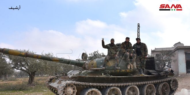 وحررت وحدات من الجيش أمس تل السواتر وقرية الهرتمية على محور أبو الضهور وقريتي معردبسة وخان السبل على جانبي الطريق الدولي حلب-حماة بعد القضاء على آخر بؤر الإرهاب فيها.