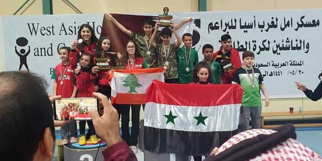 أحرز منتخب سورية لكرة الطاولة خمس ميداليات متنوعة “ذهبيتان ومثلهما فضية وبرونزية واحدة” في بطولة غرب آسيا للبراعم والأشبال والناشئين المقامة حالياً في السعودية.