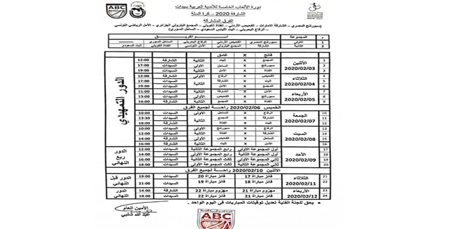 ويلعب فريق الساحل أولى مبارياته يوم الإثنين القادم مع سبورتينغ المصري ثم يواجه الرفاع البحريني يوم الجمعة القادم على أن يختتم مبارياته في الدور الأول السبت القادم مع الفحيص الأردني.