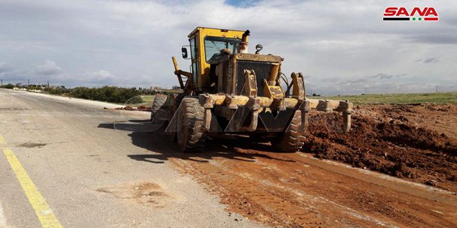 وبين خليل أنه تم استنفار الكادر الفني ومختلف الآليات الهندسية للقيام بعمليات تنظيف وتسليك وتأهيل الطريق الدولي بين المدينتين وحالياً تقوم الورش بإزالة مخلفات الإرهاب من السواتر الترابية والمتاريس لافتا إلى أنه ستتم بعد ذلك المباشرة بإعادة ترميم جسم الطريق وأجزاء من بنيته الإنشائية بالإضافة إلى الجسور التي تعرضت أيضا للتخريب بهدف إصلاحه ووضعه في الخدمة.