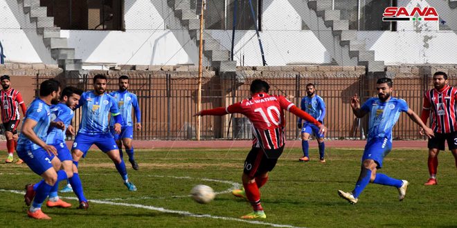 من مباراة الوثبة وحطين في الدوري الممتاز لكرة القدم