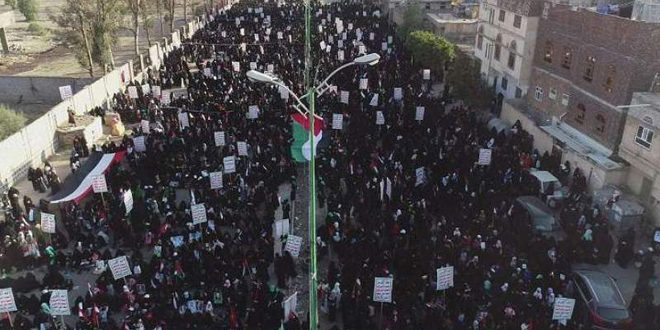شهدت العاصمة صنعاء اليوم مظاهرة نسائية حاشدة رفضا لمؤامرة “صفقة القرن” المشؤومة وتعبيرا عن التضامن مع الشعب الفلسطيني.