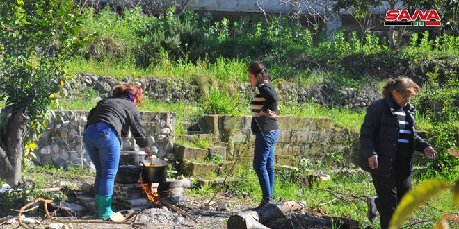 15 سيدة قدمن من دمشق والسويداء وطرطوس قضين أوقاتا ممتعة وسط أجواء ريفية هادئة تبعث على الراحة والاسترخاء وحضرن بأنفسهن مأكولات وحلويات ريفية بامتياز واستمتعن بالغنى والجمال الطبيعي الذي تزخر به القرى والأرياف في الساحل السوري.