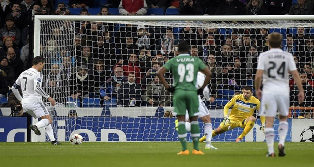 تغلب ريا ل مدريد الاسباني على ضيفه لودوغوريتس اللبلغاري 4-صفر أمس ضمن الجولة الاخيرة من دور المجموعات في دوري أبطال أوروبا لكرة القدم.