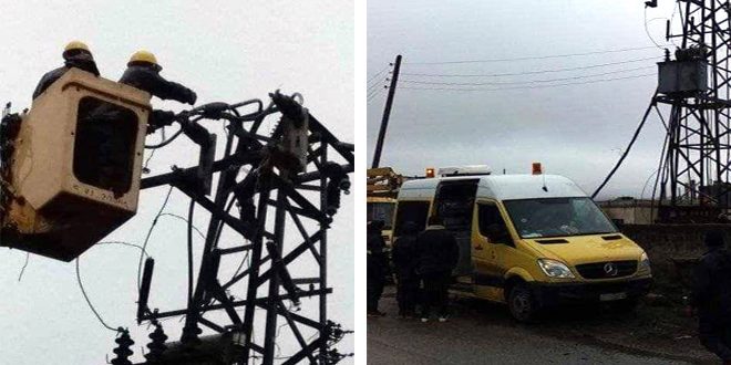 وأضاف الحسن إن الورشات تعمل حاليا على إصلاح أعطال خط التوتر المتوسط في قرية المشتاية وقرية الزعفرانة بريف حمص الغربي ولفتايا شمال القصير ولوحة التوتر المنخفض في قرية سنون بريف حمص الغربي لافتا إلى أن الورشات عملت حتى ساعات متأخرة أمس لإصلاح العطل الكبير في خط التوتر المتوسط “مشتى الحلو حاصور كفرام مريمين” وإعادته للخدمة.