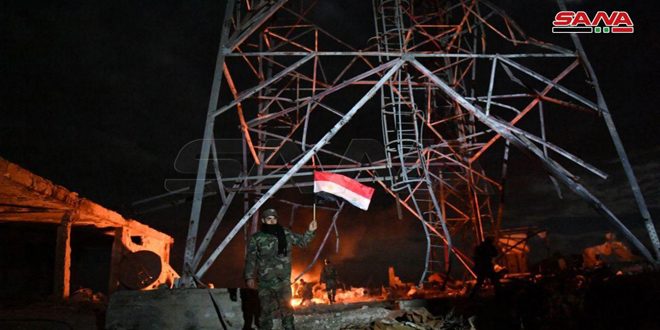 التقت وحدات الجيش العربي السوري المتقدمة من ريف حلب مع الوحدات المتقدمة من ريف إدلب الشرقي في محيط تل العيس بريف حلب الجنوبي بعد دحر الإرهابيين من المنطقة.