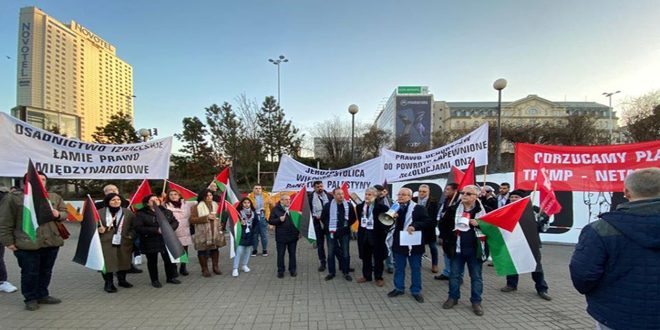 نظم أنباء الجالية الفلسطينية في بولندا وقفة احتجاجية وسط العاصمة وارسو رفضاً لـ “صفقة القرن” التي تهدف إلى النيل من حقوق الشعب الفلسطيني بإقامة دولته المستقلة وعاصمتها القدس.