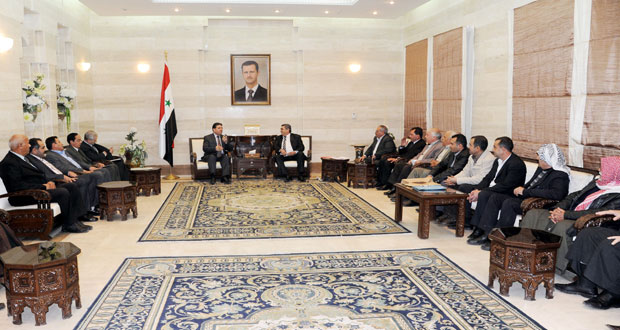 أكد رئيس مجلس الوزراء الدكتور وائل الحلقي خلاله لقائه اليوم وفدا من مختلف الفعاليات الشعبية عن بعض مناطق محافظة ريف دمشق برئاسة عضو مجلس الشعب علي الشيخ حرص الحكومة على اتخاذ إجراءات تسهم في التخفيف من آثار الحصار الاقتصادي الجائر على سورية والحرب الكونية التي تتعرض لها.