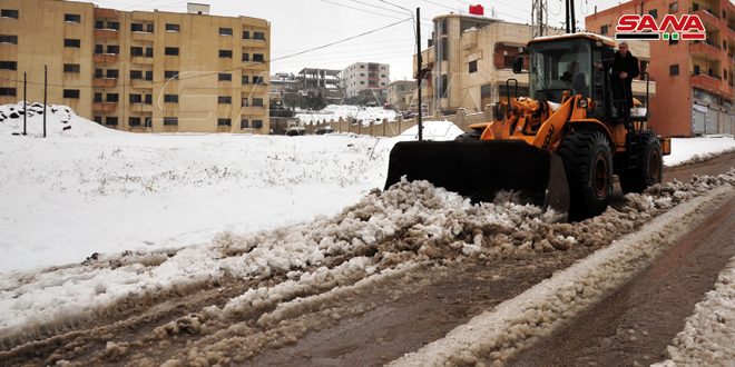 بدأت آليات المديريات الخدمية في محافظة السويداء بفتح الطرقات التي أغلقتها الثلوج نتيجة الظروف الجوية في المنطقتين الشرقية والجنوبية الشرقية للمحافظة.