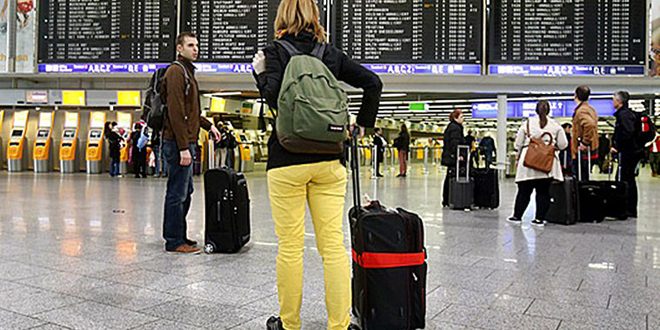 أعلنت سلطات مطار فرانكفورت في ألمانيا اليوم عن إلغاء نحو مئة رحلة من وإلى المطار الذي يعد الأكبر في البلاد بسبب العاصفة سابين التي تجتاح العديد من الدول الأوروبية.