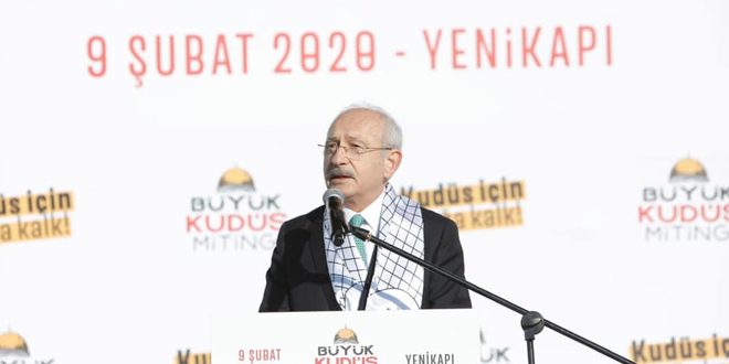 وخلال المظاهرة أكد رئيس الشعب الجمهوري كمال كيليتشدار أوغلو في كلمة له أن القضية الفلسطينية قضية “مفصلية ومصيرية” لافتا إلى “أن افشال المخططات الإسرائيلية والأمريكية لن يكون إلا بالتضامن بين الشعوب والدول الإسلامية وخاصة المعنية بالمنطقة”.