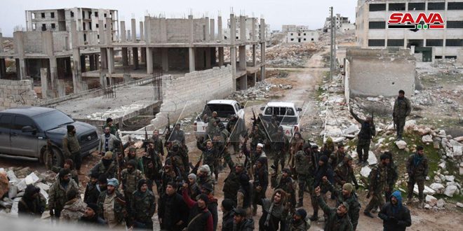 بالتوازي تواصل وحدات من الجيش تعزيز انتشارها في محيط الطريق الدولي حلب-دمشق في قرى وبلدات الزربة وايكاردا بعد تحريرها من الإرهاب.