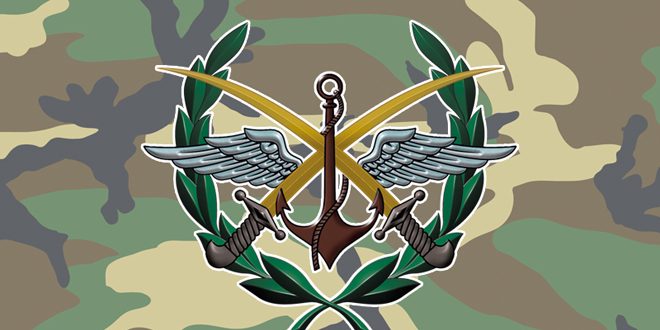 وشددت القيادة العامة للجيش على استمرار قواتنا المسلحة الباسلة بتنفيذ مهامها الدستورية والوطنية واستعدادها للرد على اعتداءات قوات المحتل التركي والقيام بواجبها المقدس في الدفاع عن أمن الوطن والمواطنين على جغرافية الدولة السورية.