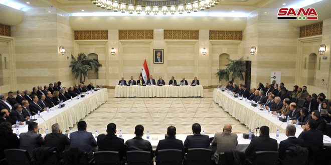 وطلب من اتحاد غرف التجارة تكثيف التواصل مع الغرف بالمحافظات وإعداد ورقة عمل خاصة بالمعوقات التي تعترضهم ومقترحات تذليلها ليصار إلى دراستها في مجلس الوزراء واتخاذ ما يلزم وتكليفه تقديم رؤية حول سياسة التسعير وإصدار نظام الفوترة وتطبيق منظومة الدفع الإلكتروني والتأمينات والسجل التجاري وتم الاتفاق على إعداد رؤية مشتركة لمواجهة التحديات التي فرضتها الحرب الاقتصادية وخاصة فيما يتعلق باحتياجات المواطنين والتسهيلات اللازمة للتجار لاستيراد المواد الأساسية.