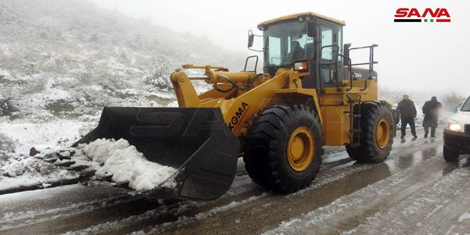تعمل المديريات الخدمية في محافظة حماة حاليا على فتح عدد من المحاور الطرقية المغلقة جراء تراكم الثلوج ولا سيما في الريف الغربي.
