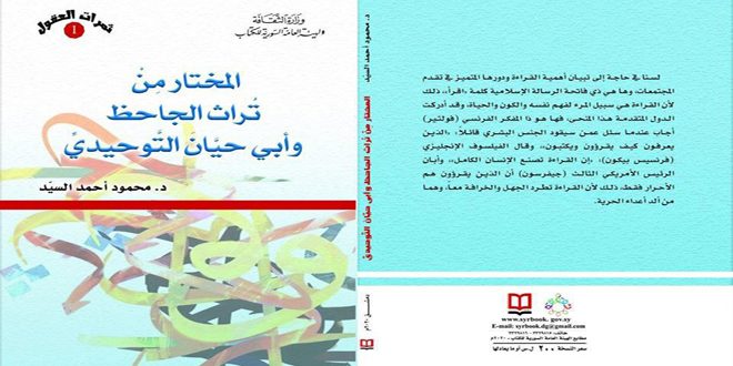يستعيد الباحث الدكتور محمود السيد مقتطفات من مؤلفات علمين من أعلام الأدب العربي وهما أبو عثمان الجاحظ وأبو حيان التوحيدي عبر كتاب جديد ضمن مسعى لدفع الشباب للعودة لتراثهم وتخفيف تعلقهم بالتقانة الحديثة.