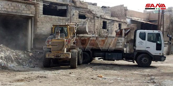 بدوره مدير النفايات الصلبة المهندس عبد الغني جعفر أشار إلى مشاركة المديرية بعدد من الآليات “سيارات قلاب” لنقل الأنقاض من التجمعات وبالتالي المساهمة في رفع التلوث البيئي والبصري عن الشوارع والأحياء.