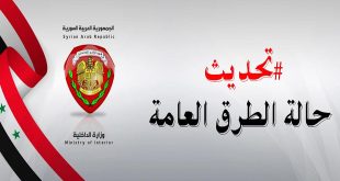 وأوضحت الإدارة في نشرتها بعد مساء اليوم التي تلقت سانا نسخة منها أن كل الطرق في محافظة حمص سالكة عدا طريق “شين مشتى الحلو” غير سالك بسبب تشكل الجليد.