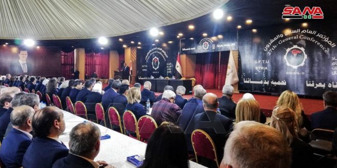 أكد المشاركون في المؤتمر العام السابع والعشرين لاتحاد نقابات العمال ضرورة مواصلة العمل والنضال بكل الوسائل المتاحة لكسر الحصار الاقتصادي والإجراءات القسرية الجائرة أحادية الجانب المفروضة على الشعب السوري مشددين على أهمية الإسراع في تنفيذ مشروع الإصلاح الإداري وتحسين وضع العمال وإطلاق مسيرة التنمية بوتائر عالية.