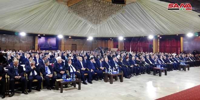وأكد المشاركون ان عمال سورية ونقابييها يجددون للرئيس الأسد عهد الولاء والوفاء ووقوفهم صفاً واحداً خلف القيادة الحكيمة والشجاعة في التصدي للهجمة الإرهابية الاستعمارية الشرسة على وطننا والوقوف إلى جانب جيشنا العربي السوري البطل لتحرير كل شبر من الأراضي السورية مثمنين الانتصارات الباهرة التي حققها وتضحياته الجسام في سبيل تطهير أرض الوطن من الإرهاب وداعميه.