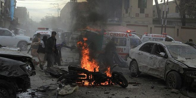 ونقلت رويترز عن مسؤولين باكستانيين لم تكشف هويتهم قولهم إن “تفجيرا انتحاريا استهدف عربة للشرطة في كويتا ما أسفر عن مقتل عشرة أشخاص على الأقل بينهم شرطيان وإصابة 35 شخصا آخرين”.