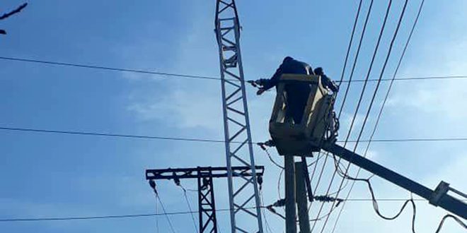 كما نصبت ورشات الشركة برج توتر متوسط بدلاً من بورتيك خشبي محروق وذلك على خط المقاطع تفريعة قايا الرائد العربي.